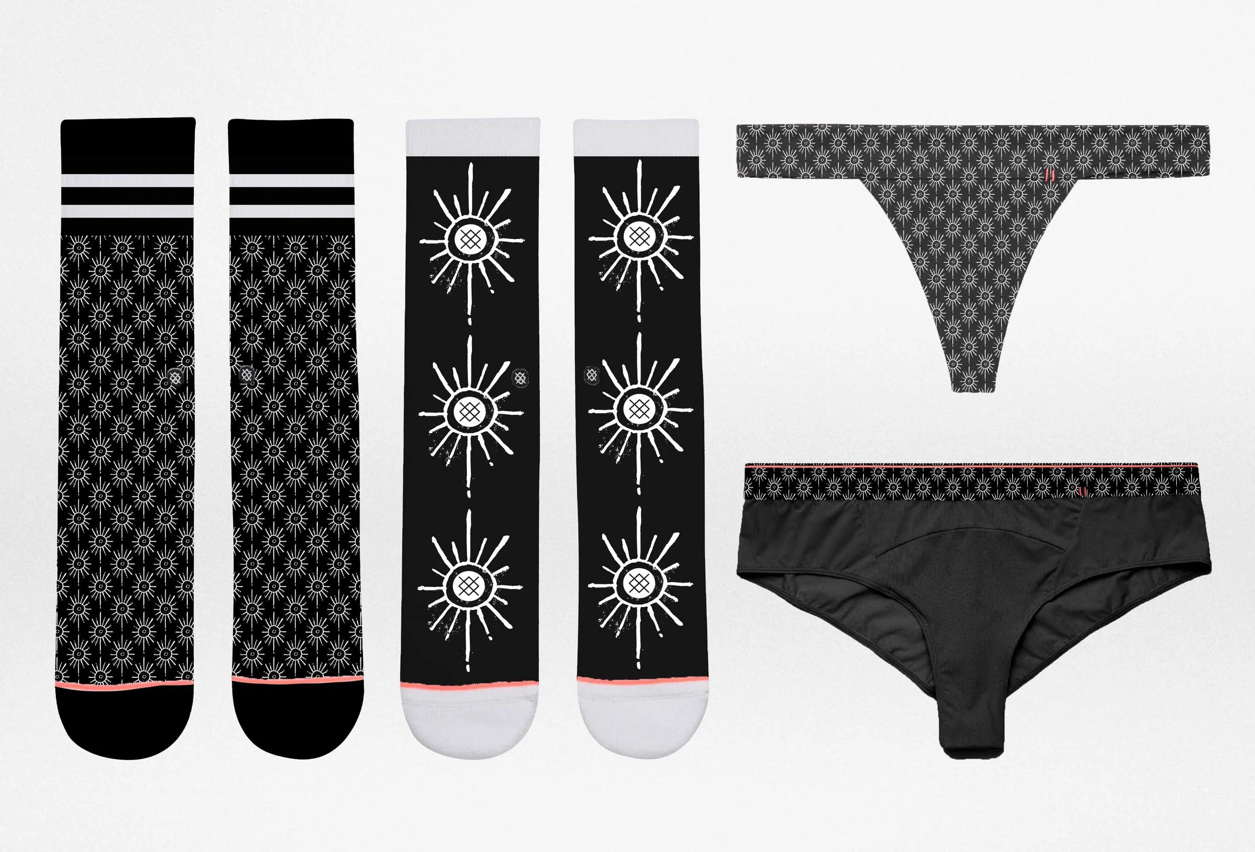 This intimates line was done in collaboration with Stance Socks. To create this line I focused on their theme "Future Goddess Now" and designed 4 unqiue patterns to enhance this message. The name of my line was Celestial Pines. This line draws inspiration from the mountains. A goddess will encounter many obstacles in her life and the imagery of mountains shows the larger variety of barriers she will face, as well as her achievement and empowerment as she overcomes those barriers.